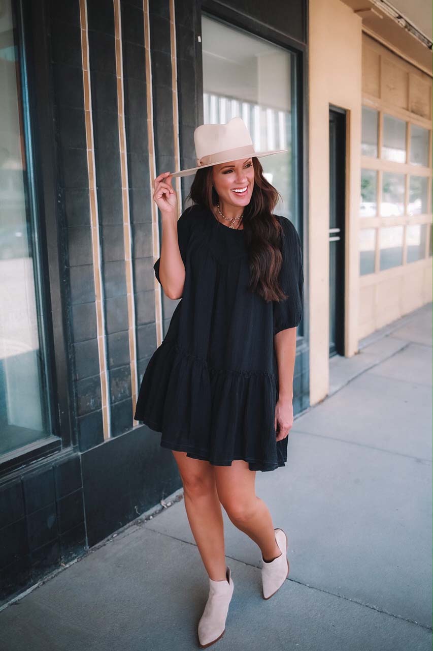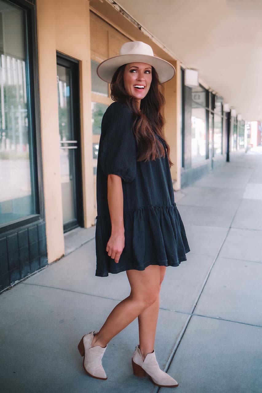 Is there anything more darling than a babydoll style dress? The Caroline Ruffle Dress has all the feminine feels. With its free-flowing style and fun but modest length, it’s a perfect transitional look for fall!