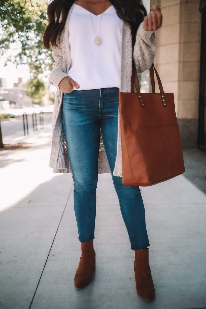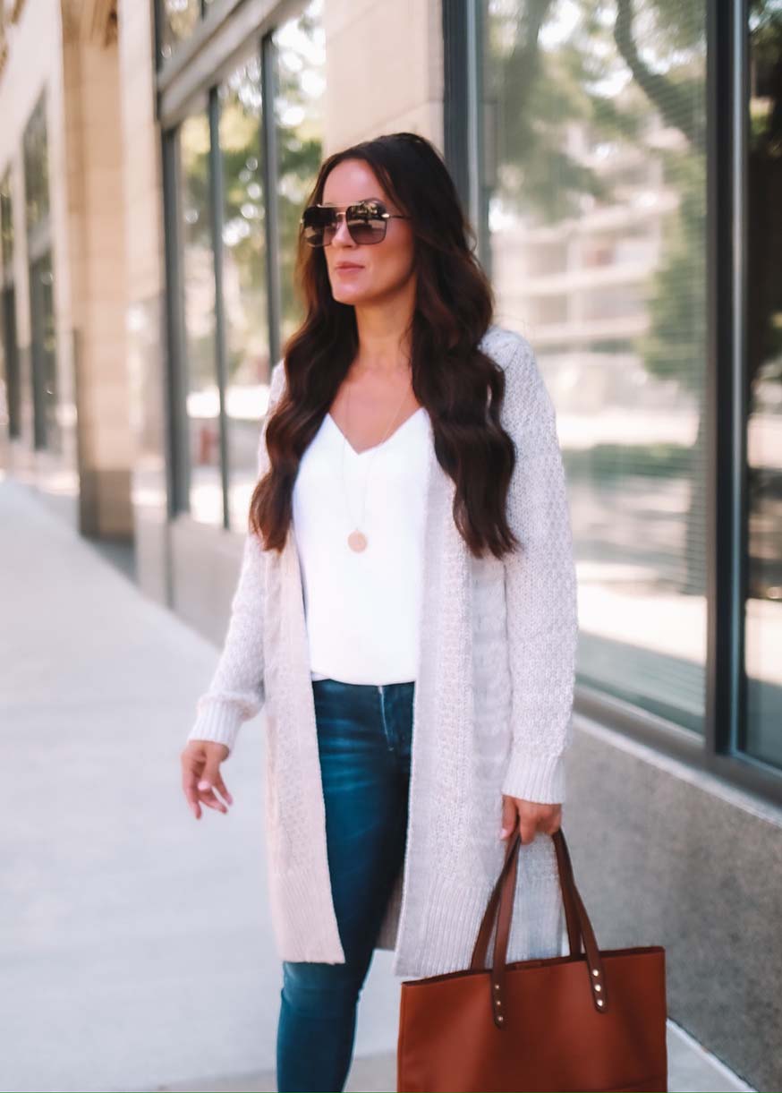 My love for wearing cardigans in the fall runs deep. And this Ariana Open-Front Knit Cardigan checks all of my boxes for the perfect cardigan. With its neutral color and cozy texture, this sweater is versatile, stylish, and just plain pretty! Booties and a good bag are always a great pairing for long cardigans. But don’t count out leggings and sporty tennies as another great styling option. You simply can’t go wrong with a good cardigan, my friends!