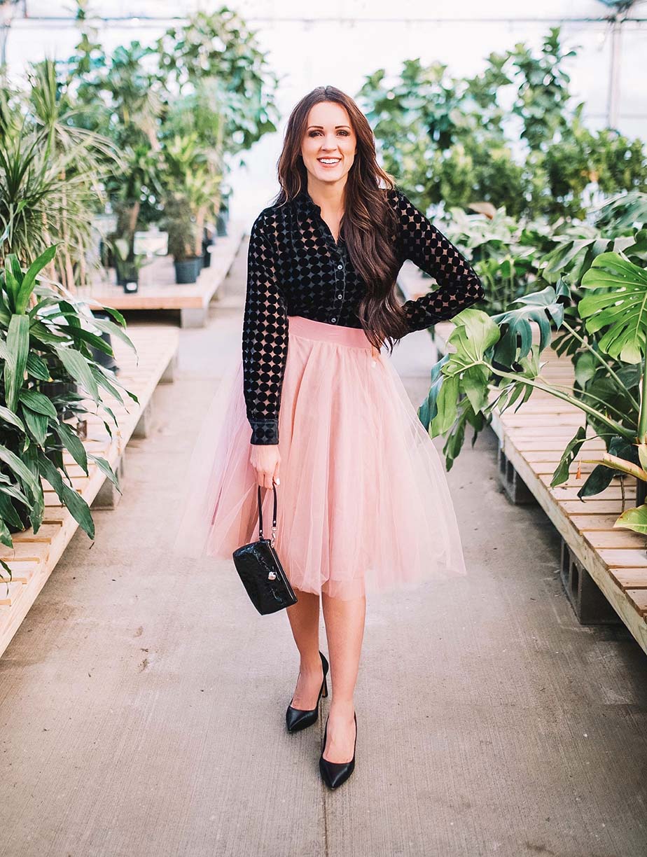 And last but not least, I give you the girliest of girly…..the Faith Velvet Burnout Dot Tunic paired with a tulle skirt. Don’t we all need a little velvet and tulle in our lives? The answer to that is YES! And you CAN pull off this look, in case you were wondering. This look is definitely on the dressier side, but hopefully we all have a holiday event that calls for being extra! Simply tuck the velvet tunic into the tulle skirt (or any skirt, honestly) to channel your inner Carrie Bradshaw.