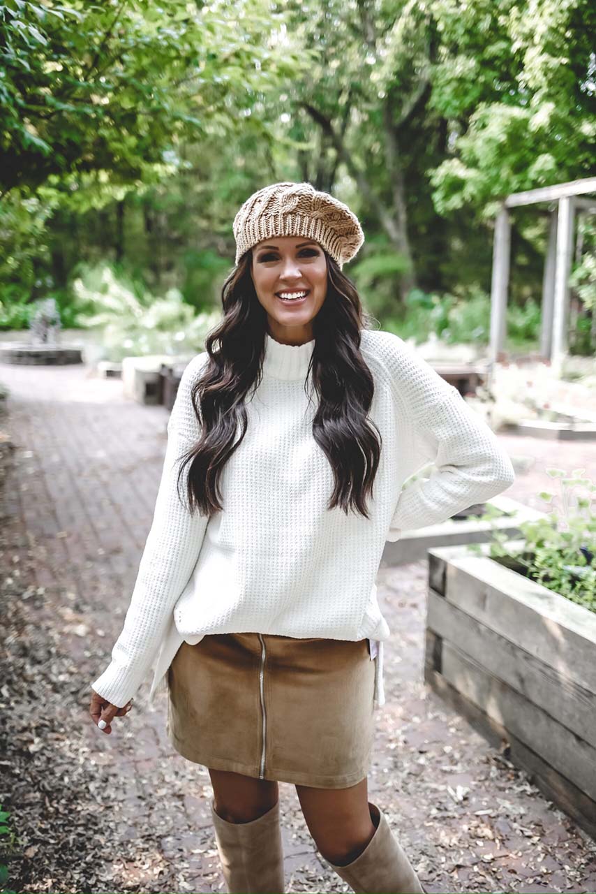 This sweater continues to be a favorite, and for good reason! It is so soft and is a great budget-friendly alternative for the popular Free People sweater that has been wildly popular. It is legging friendly, so soft, and amazing quality. When it comes to a great option for a Thanksgiving Day outfit, this sweater fits the bill at a great price!