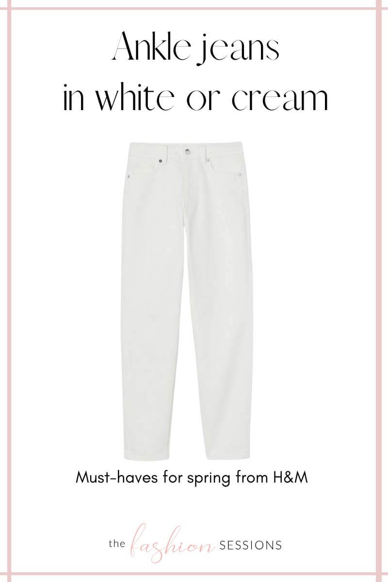 Ahhhh, white jeans. Who hasn’t been traumatized by a pair of white jeans before? I know I have been! But this pair of cropped straight jeans in a gorgeous, barely off-white hue will become your new best friend for spring. Again, sizing up in H&M denim is usually a good idea. I’ve already worn them multiple times this year, both with a monochromatic look and with a high-contrast top. I wouldn’t steer you wrong, I promise. These pass the test to be in your closet.