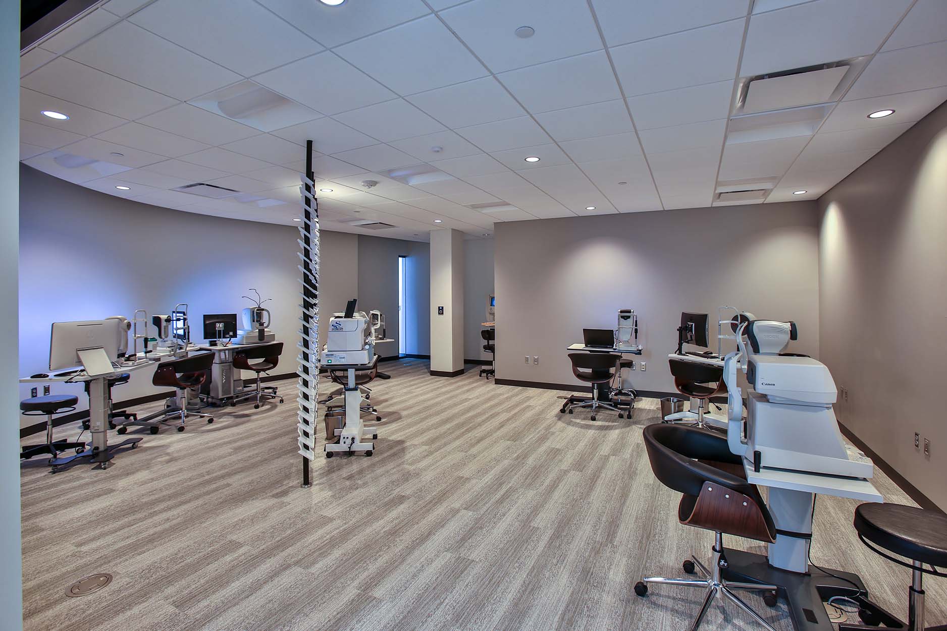 I was immediately struck by how calm and serene the front area is. Little did I know that this is intentional and all part of the patient experience. Part of this calming environment comes from the fact that something is actually missing! You won\’t hear any ringing phone lines in the reception area. In stark contrast to most physician’s waiting rooms, Kugler Vision does not answer their phones in the front area, and you won\’t see any computers, files, or paperwork. They have an area in the back dedicated to patient services so that the front area remains quiet and undisturbed.