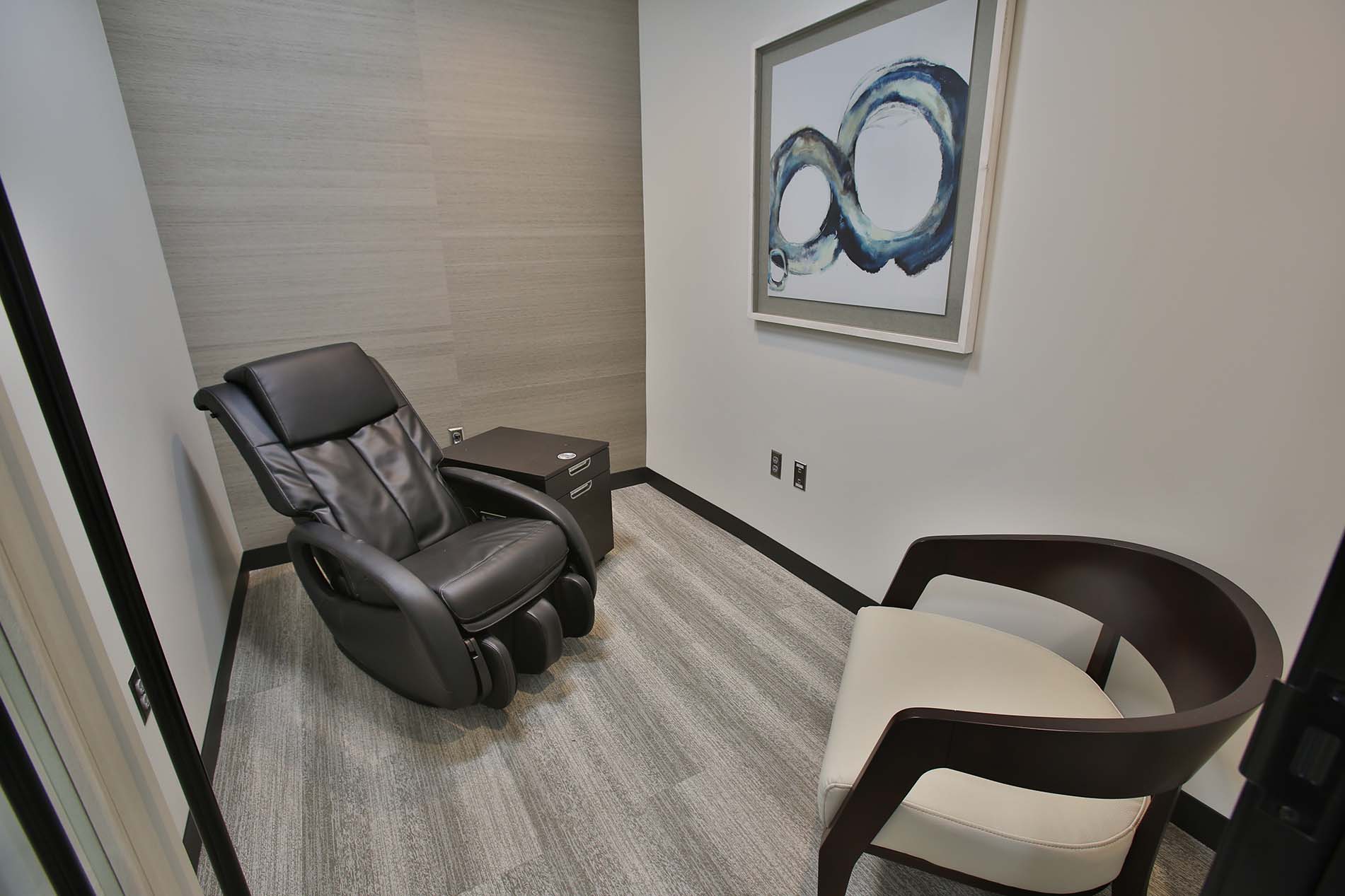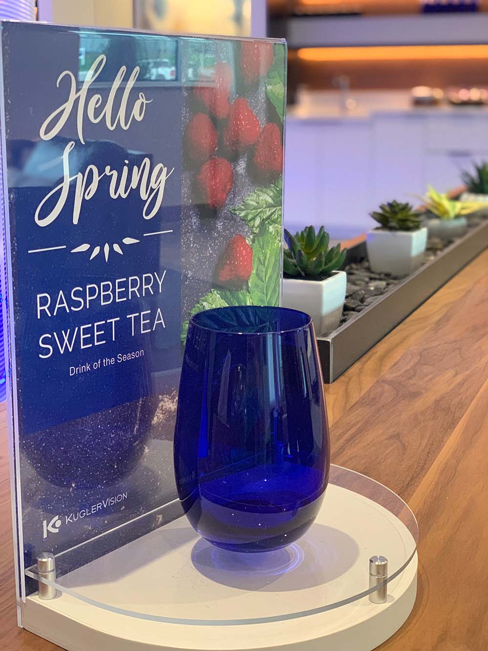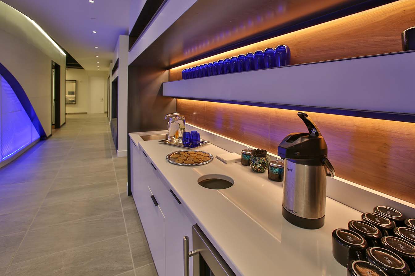 From the sleek architecture to the furniture, from the artwork to even the color of the walls, it is clear that the Kugler team designed their office with the patient in mind. The windows to the outside are tinted in such a way that they adjust to the amount of light filtering in, which is key given that eye sensitivity would be a factor for many patients. They have a hospitality area that is not only stunning but also stocked with fruits, yummy snacks, and chilled beverages, even a featured drink of the season! They actually bake all of their own cookies in house! I have never experienced something like that before at a visit to the doctor. You almost feel as though you were at a resort!