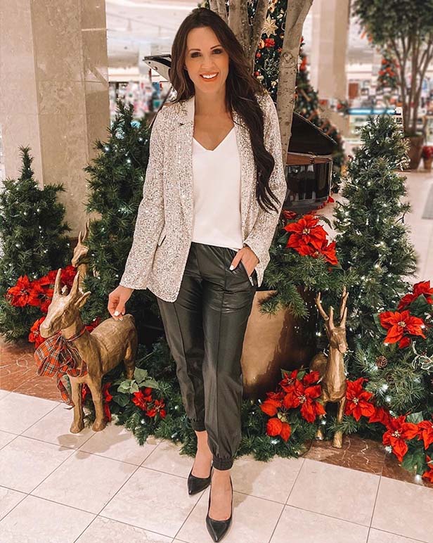 **These faux-leather joggers continually make my top-seller list. I wore them a lot during the holidays, but they are so versatile that you guys keep scooping them up. They make a great date night look, too. I can’t believe they are still fully stocked, but they are! Grab them while you can. You won’t regret owning these, I promise. Available HERE.